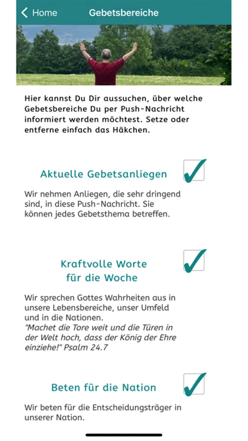 Die GebetsimpulseApp ist für Menschen, die an Jesus Christus, den Sohn Gottes glauben und bereit sind, im Gebet gemeinsam für verschiedene Anliegen einzustehen.