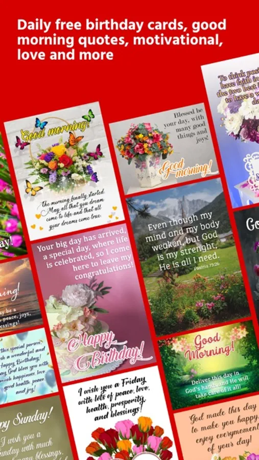 Daily quotes - status & images is the ideal app for you, who wants to have daily beautiful messages ready and status for each and every occasion to share with your friends, family and loved ones. Every day images with beautiful background, phrases and status updates of good morning, good afternoon, good night, love, days of the week, friendship, religion, faith, motivation, reflection, I love you, romantic, dating, marriage, jokes, birthday, congratulations, celebratory dates and much more...
