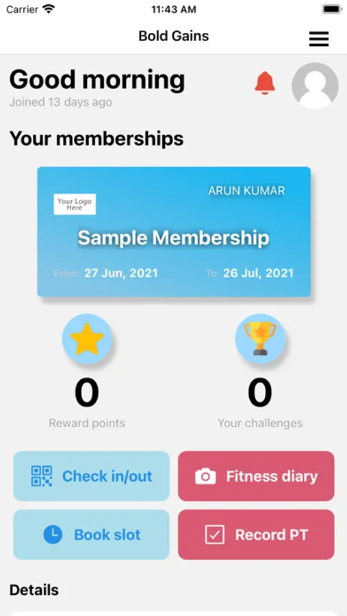 Bold Gains app automatically syncs with your studio to give you information about your fitness journey.