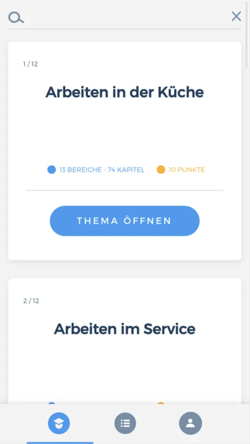 Die App „Koch/Köchin“ bereitet Sie umfassend auf Ihre bevorstehende theoretische Prüfung zum Koch/zur Köchin bei der IHK vor. Die Kombination aus einem Lern- sowie einem Prüfbereich dient somit als ideale Lernunterstützung. Außerdem sind Sie jederzeit in der Lage, sich Ihren aktuellen Lernfortschritt darstellen zu lassen, um Rückschlüsse auf eventuelle Wissenslücken führen zu können.