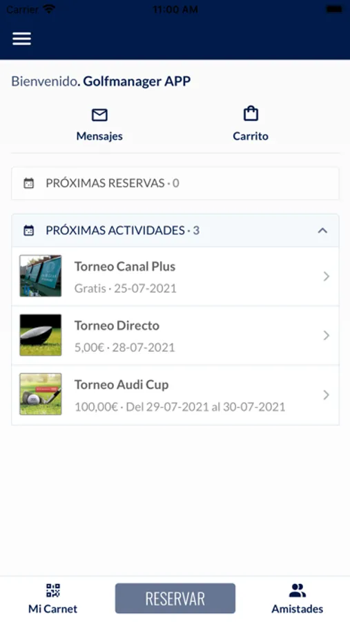 Bienvenido a la aplicación del Golfmanager, la compañía perfecta en tus partidas de golf y la mejor forma de mantenerte al día con tu Club.