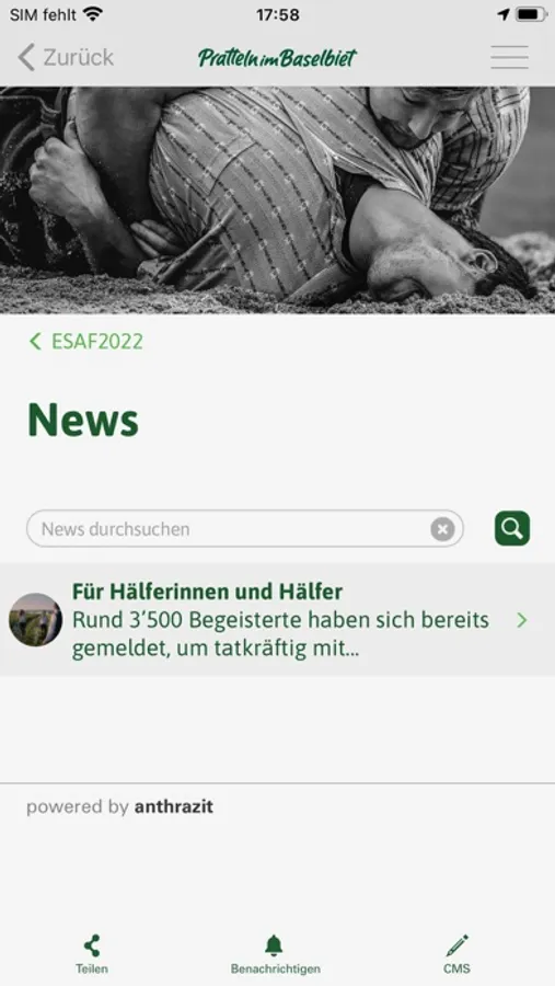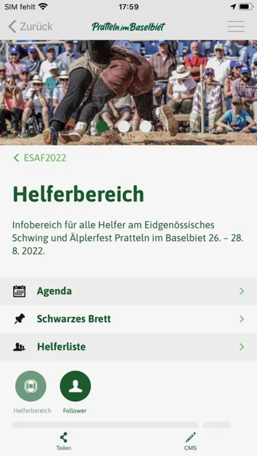 Offizielle Helfer App des Eidgenössischen Schwing- und Älplerfestes 2022 Pratteln im Baselbiet. Die dient als offene und geschlossene Kommunikationsplattform mit den Helferinnen und Helfer.