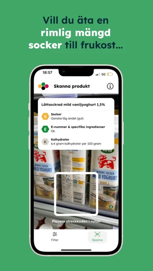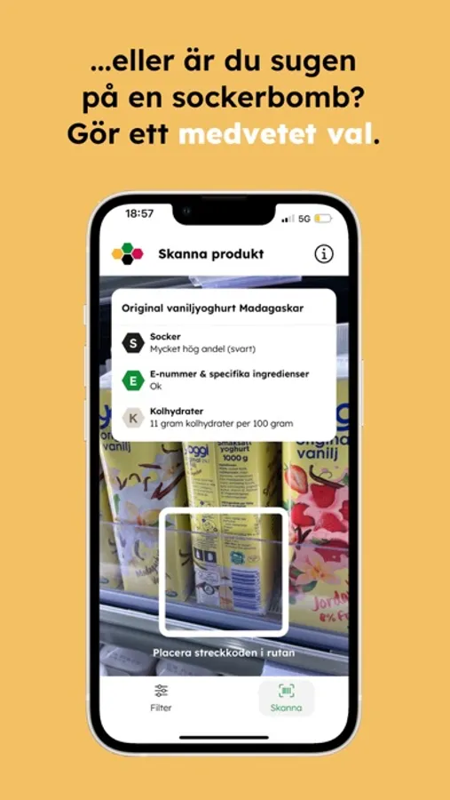 I nuläget täcker appen cirka 95 procent av alla varor i butiken. Vissa varor är dock inte registrerade i databasen som vi använder, för andra saknas viktig information. När du skannar sådana varor kommer appen att svara med ett frågetecken eller att det saknas information.