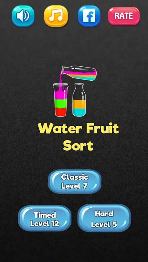 Try to sort it and pour colored fruit water in the bottles until all colors are in the same bottle. A relaxing and challenging game to train your brain