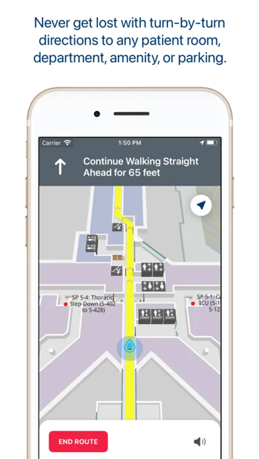 • Get door-to-door real-time guidance from your location to anywhere in the hospital
