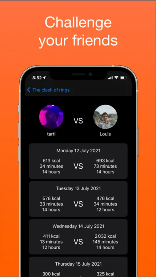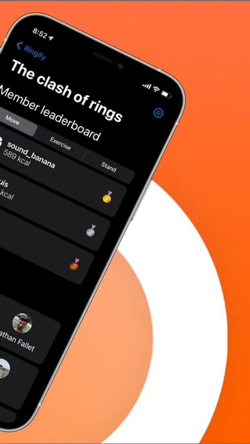 Ringify integrates with the Health app to automatically import your activity into the leaderboards.