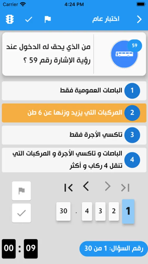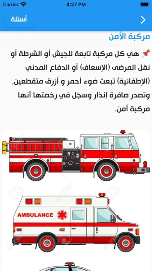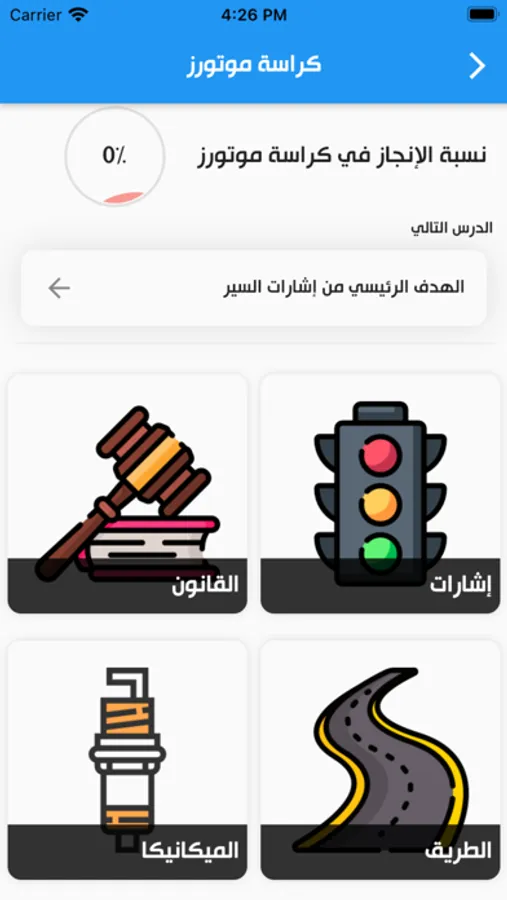 * تقييم البرنامج لجهوزية الطالب للاختبار النظري (يقدم البرنامج نصائح للطالب لضمان نجاحه بالاختبار من أول مرة)