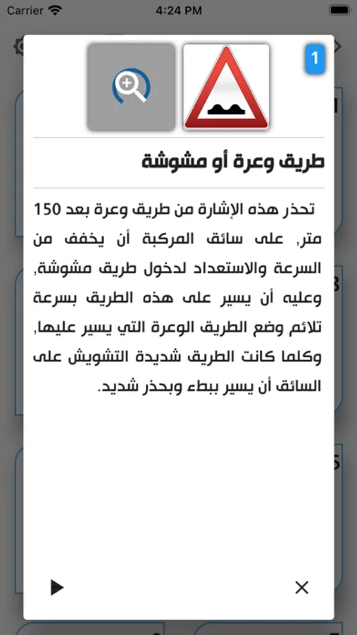 * يحتوي التطبيق على لوحة للإشارات (120 إشارة) مع شرح نصي وصوتي لها جميعًا.