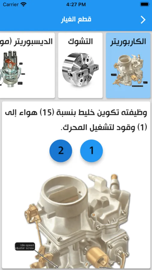 يحتوي أيضًا على شرح لقطع الغيار مع صورها الأكثر شيوعًا بالسيارات.