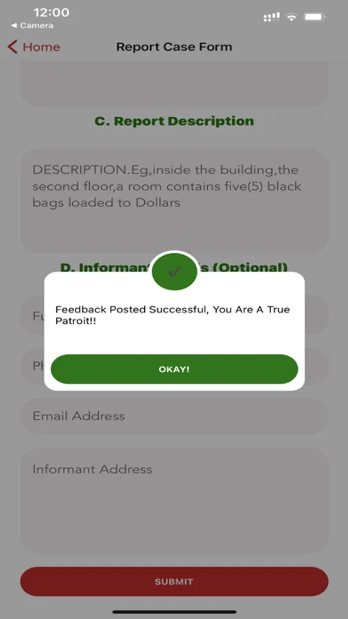 (2).Location Details of incidence(Select State and address Of incidence).(3)Description (Detailed explanation of what you want to report).Informant Details is Optional.