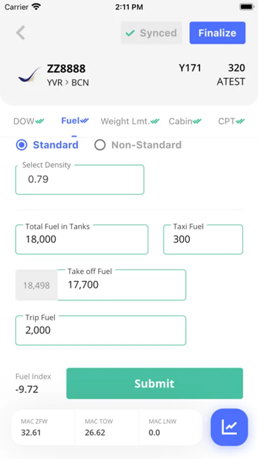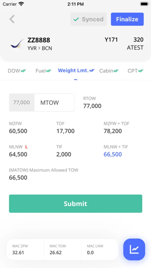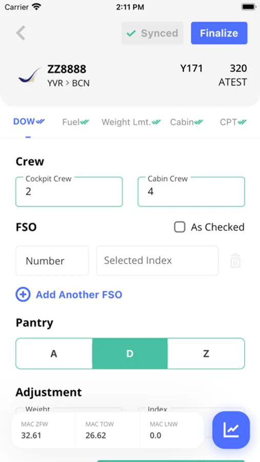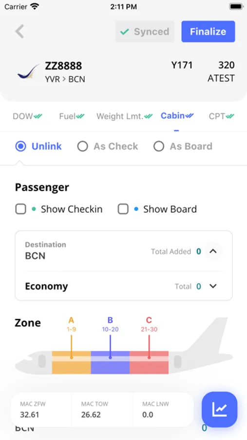 An ABOMIS weight and balance application for generating the loadsheet for flights with different type of aircraft on the mobile.
