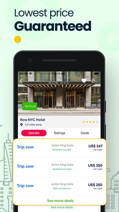 Discover daily deals easily with our Hotel Discount app. Our users will never miss exclusive offers from the top hotels. Save on booking motels, apartments, vacation rentals, resorts & BnBs, etc. Find perfect stays at the lowest price.