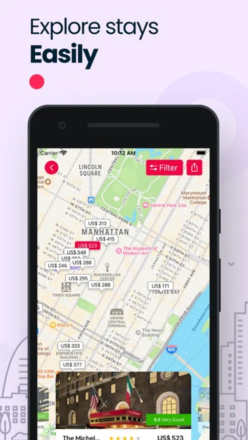 Our app has an advanced filter option to select the hotels or vacation rentals according to the user's requirements. Filter hotel by location, price, reviews & ratings, WiFi, and other essential things.