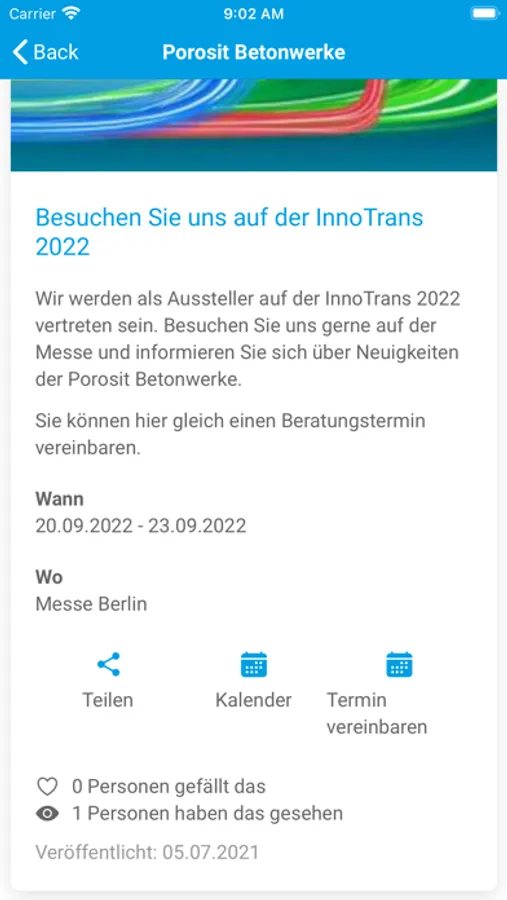 Du bekommst sowohl Veranstaltungshinweise als auch allgemeine Informationen zum Thema Betonprodukte direkt auf dein Smartphone.