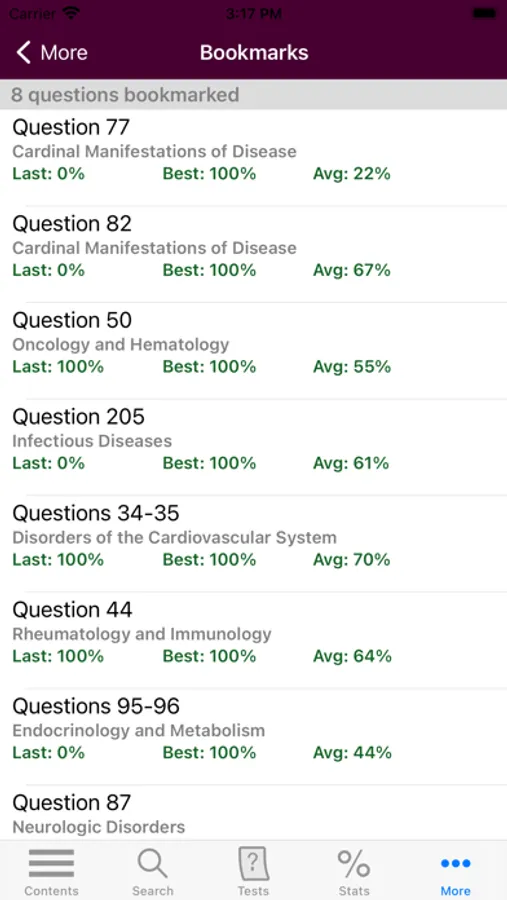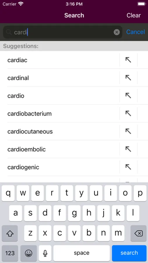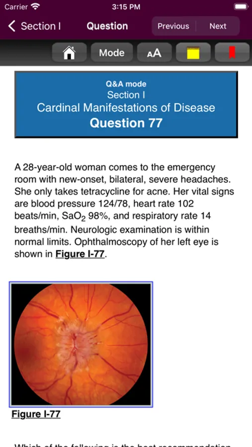 This app is very intuitive and easy to navigate, allowing you to browse the contents or search for topics. The powerful search tool gives you word suggestions that appear in the text as you type, so it is lightning fast and helps with spelling those long medical terms. The search tool also keeps a recent history of past search terms so you can go back to a previous search result very easily. You have the ability to create notes and bookmarks separately for questions to enhance your learning. You can also change the text size for easier reading.