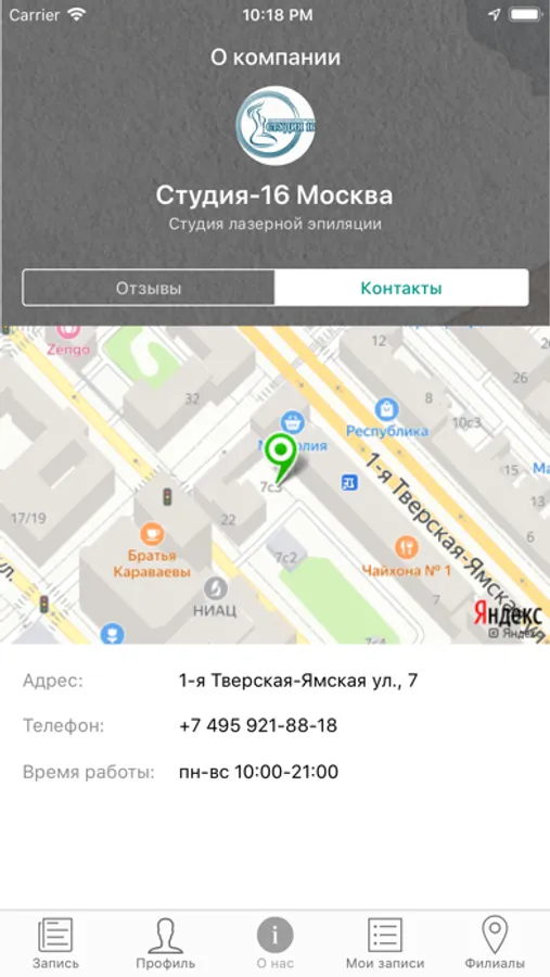 Студия-16 представляет собой федеральную сеть салонов Лазерной Эпиляции, расположенных в крупных городах нашей страны. Приоритетной задачей нашей студии является не только избавление от нежелательных волос, но и предоставление самого высокого уровня сервиса и удержание самых низких цен на услуги Лазерной Эпиляции. Для достижения 100%-го результата мы используем только диодные лазеры новейшего поколения. Все оборудование находится на сервисном обслуживании и ежемесячно проходит технический контроль. Мастера нашей студии имеют профильное образование, все прошли курсы повышения квалификации в области косметологии и регулярно совершенствуют свои знания и умения у ведущих специалистов Лазерной Эпиляции. Все мастера имеют опыт работы на разных лазерах не менее 3-х лет, а также все прошли мастер-курс у специалистов-разработчиков наших лазеров на заводе-изготовителе. Для удобства наших клиентов мы открываем наши студии в пешей доступности от станций метро или крупных пересадочных узлов наземного транспорта. На сайте Студии-16 размещены подробные планы и описания с фотографиями для быстрого нахождения наших студий. В своей работе мы стараемся как можно шире применять цифровые технологии и интернет для экономии времени наших клиентов. Система он-лайн записи позволяет самому клиенту выбрать удобное время и место для прохождения процедуры Лазерной Эпиляции, а система SMS-информирование своевременно напомнит о предстоящем визите. А подтвердить свой визит за 24 часа до процедуры клиент может одним кликом на своем мобильном устройстве.