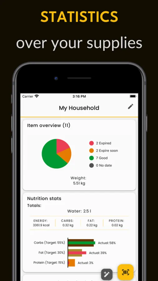 Scan barcodes to add products instantly. Access to nearly 3 million items in our comprehensive database.