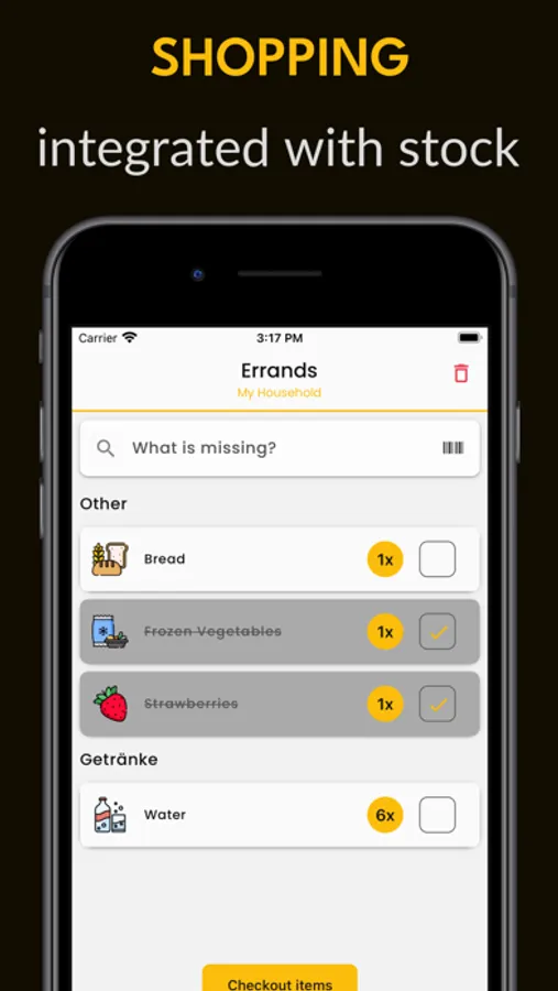 Running low on something? Place it on your shopping list. Never buy duplicates or forget essentials again.