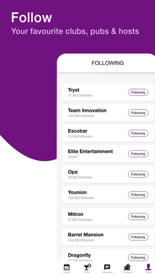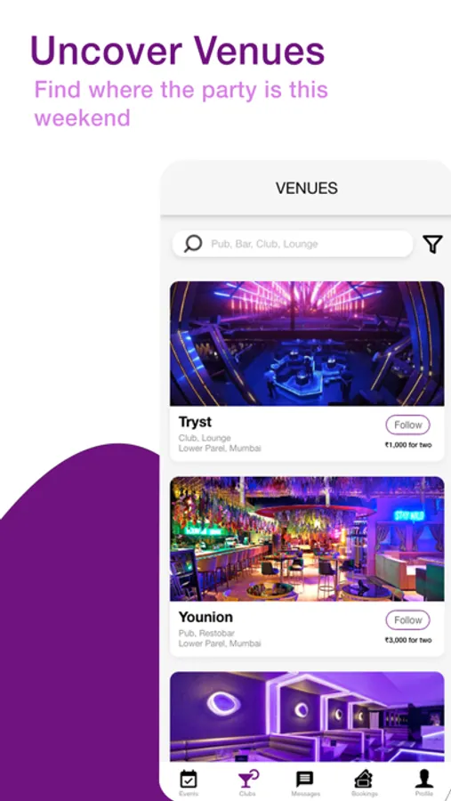 • Follow your favourite venues/ promoters and get notified every time they host an event.