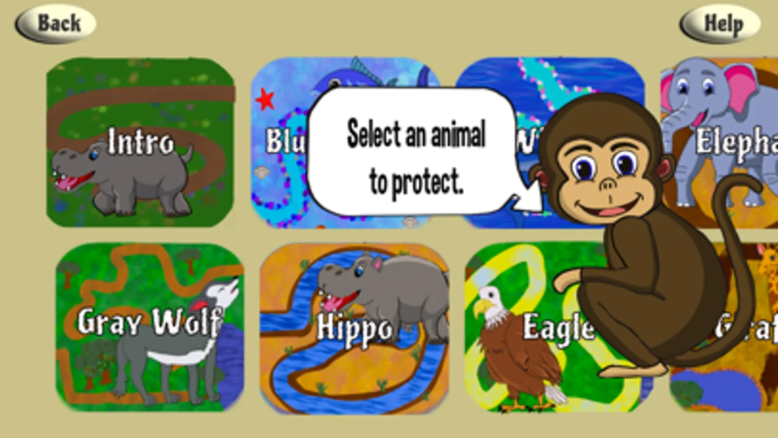 Protect levels includes scenes with your favorite animals: Panda, Elephant, Rhino, Cheetah, Eagle, Bluefin Tuna , Whale, Octopus, Wolf, Turtle, Monkey, Snake
