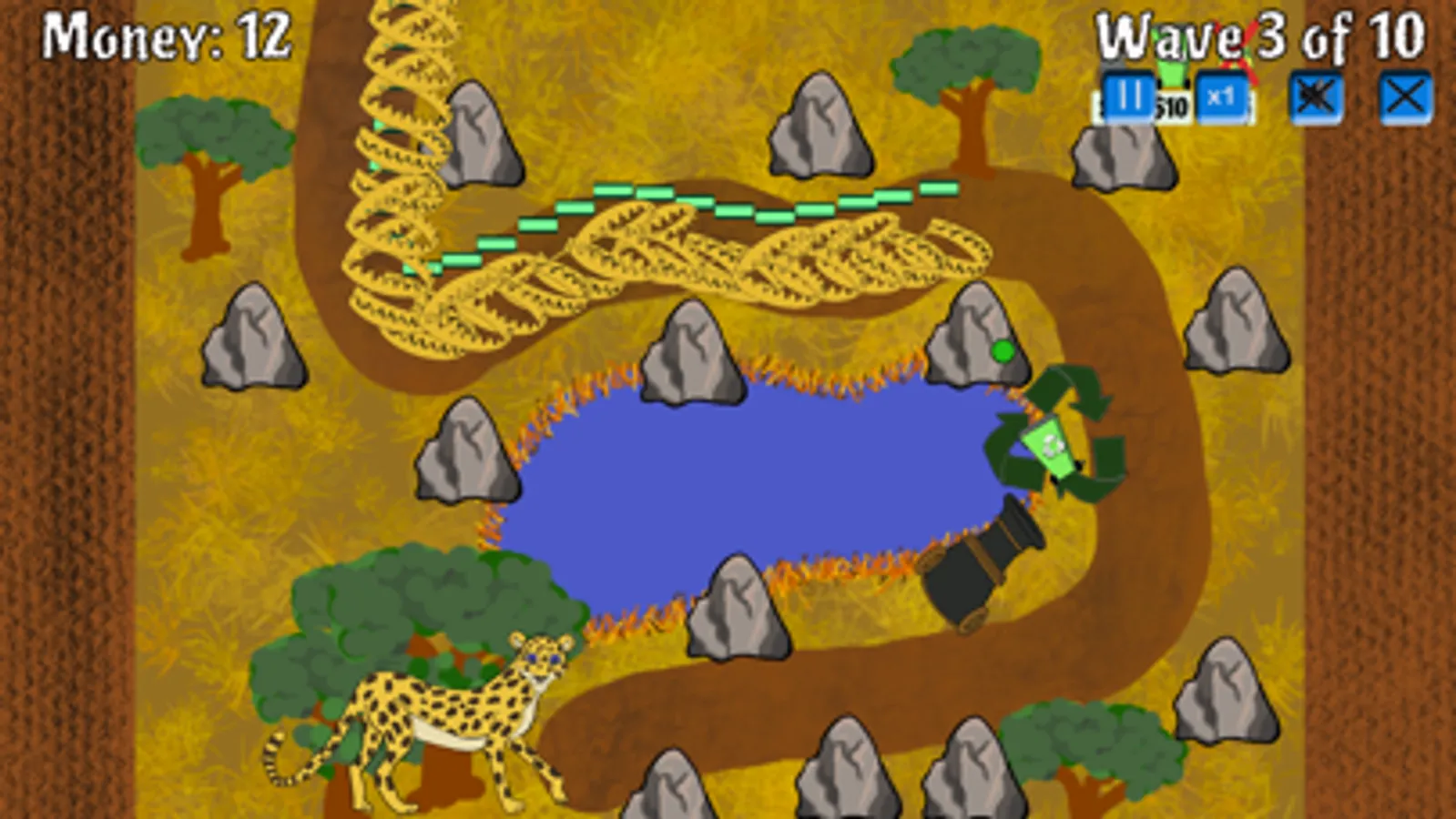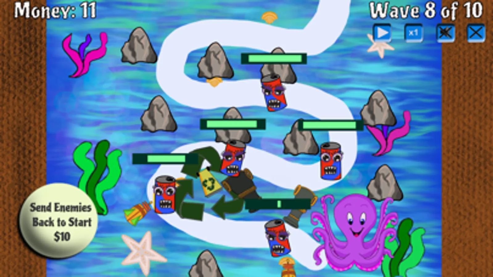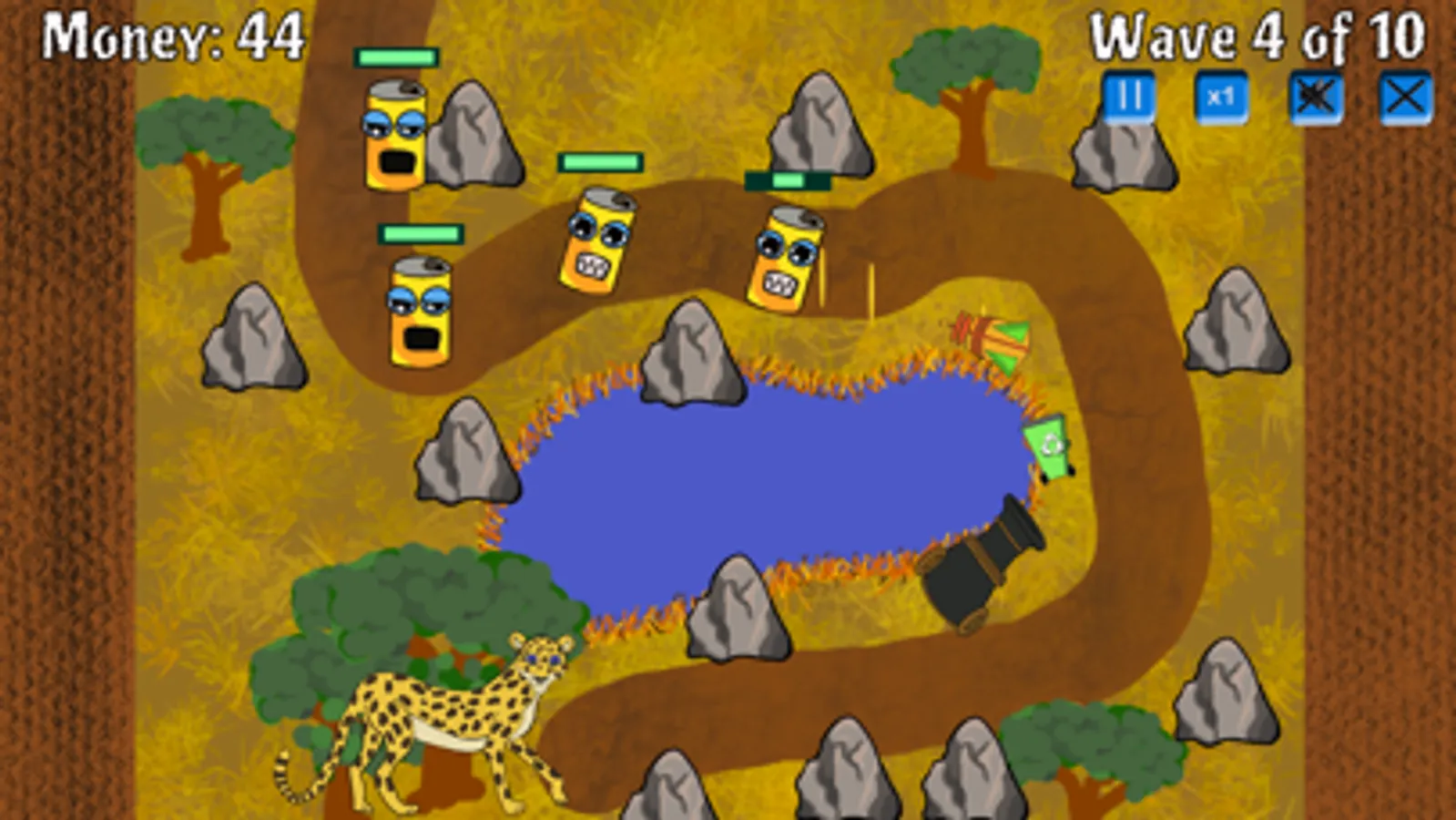 Plastic bottles, garbage bags, and tin cans are just some of the devious enemies that will attempt to destroy the environment while you try to stop them from reaching the animal. Enemies have unique strength and speed.