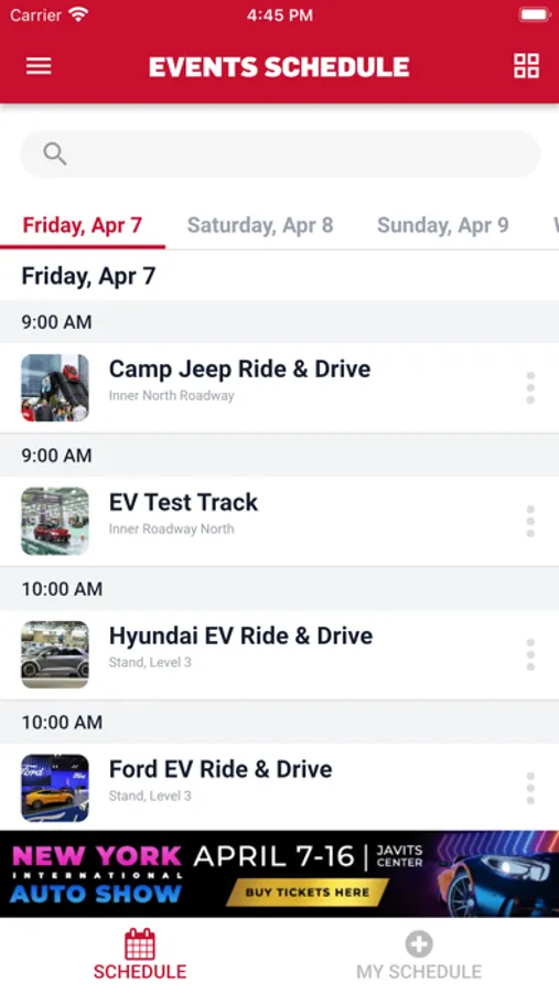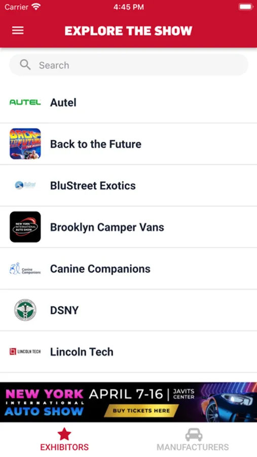 The New York International Auto Show returns to the Jacob K. Javits Center. Download the New York Auto Show app to have the Show in the palm of your hand. Plan your trip with tips on how to get there and what to do and see when you arrive. Also have access to the Show's schedule of events, exhibitor listings, floor maps and much more. Gain exclusive access to information, games and rewards that you can only find on the app.