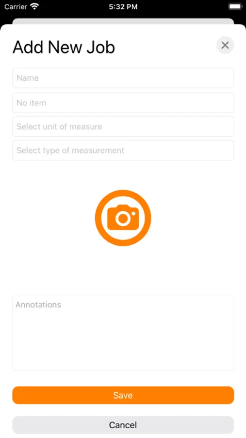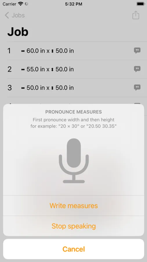 Just create a new work and record your measurements both by dictating them and writing them, with a related photo or not.