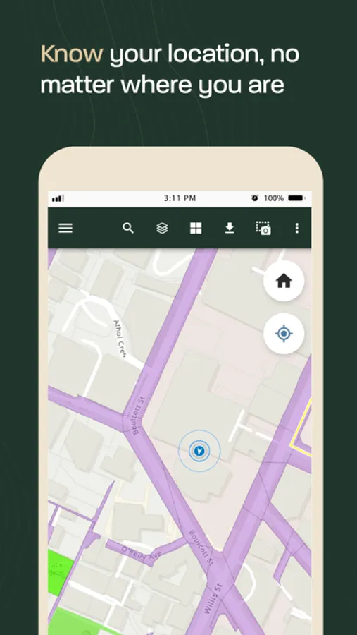 Pocket Maps displays Public Access Areas derived by Herenga ā Nuku from cadastral information, which indicate what land is publicly accessible.