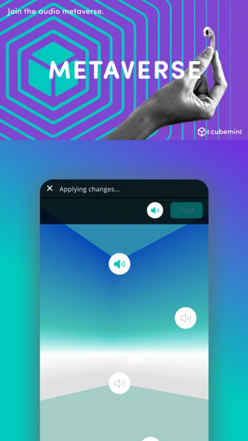 Cubemint is made up of separate augmented audio spaces called “Cubes,” which are set out into the real world. Through earbuds you can enter a parallel world and let the audio metaverse smoothly blend in with your daily life. You can enter from anywhere you want: Cubes are an indefinite part of the world and ‘always-on’.