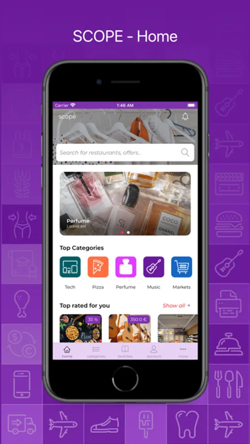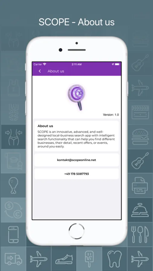 SCOPE is an innovative, advanced, and well-designed local-business search app with intelligent search functionality that can help you find different businesses, their detail, recent offers, or events, around you easily.