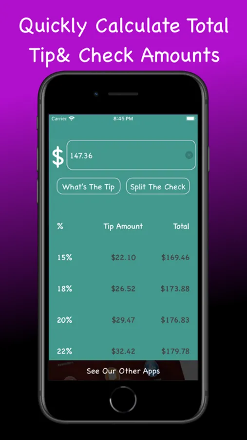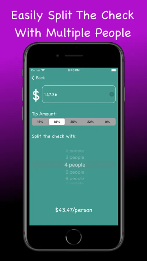Included is also a Check Splitter! Going out with multiple people? Easily calculate how much everyone owes with the tip included! Quick and easy to use, no more guessing on how much to tip calculating totals