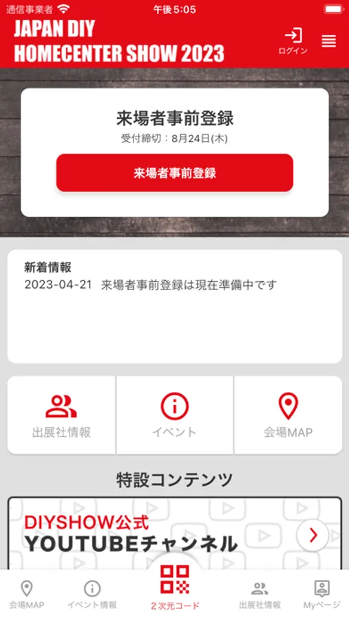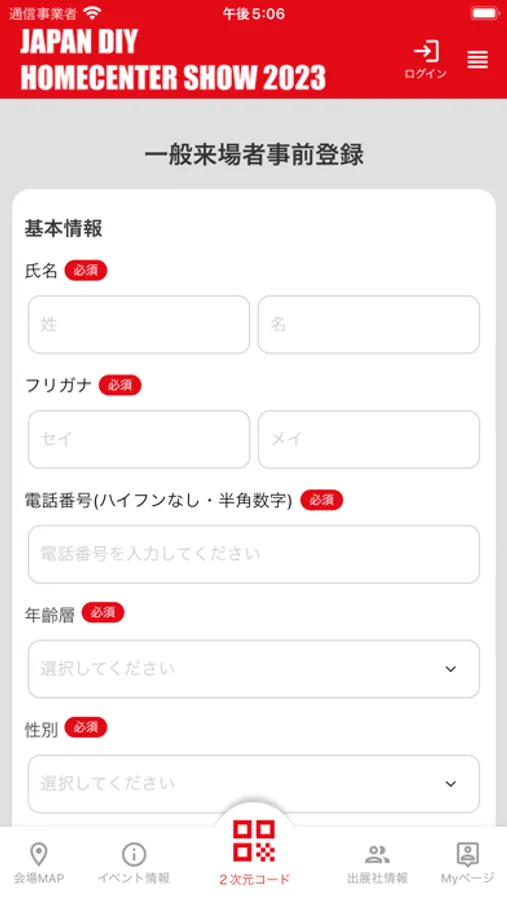 JAPAN DIY HOMECENTER SHOW 2023の参加に必要な来場者登録をする機能です