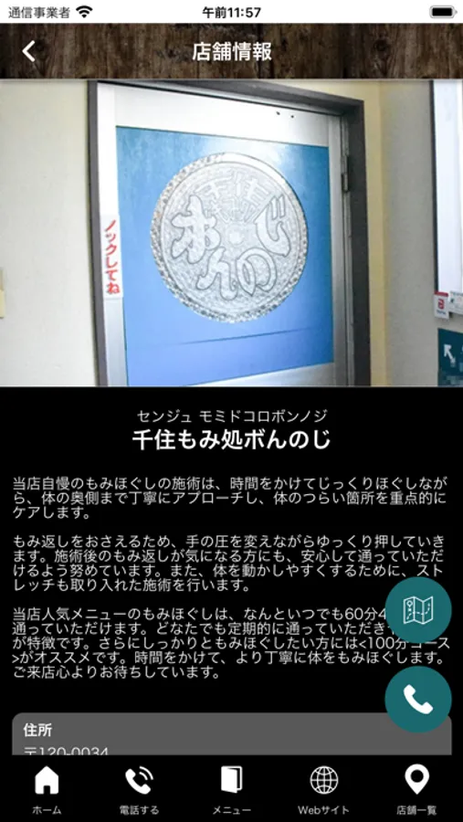 千住 もみ処ボんのじの公式アプリが登場。アプリを通して『千住 もみ処ボんのじ』の新着情報やお得な情報をリアルタイムで受け取ることができます。また、いつでもお手元のスマートフォンから、メニュー、ご希望のお時間帯のチェック・ご予約などが可能です。アプリをインストールしていただくことにより『千住 もみ処ボんのじ』を、より便利に身近にご利用していただけます。