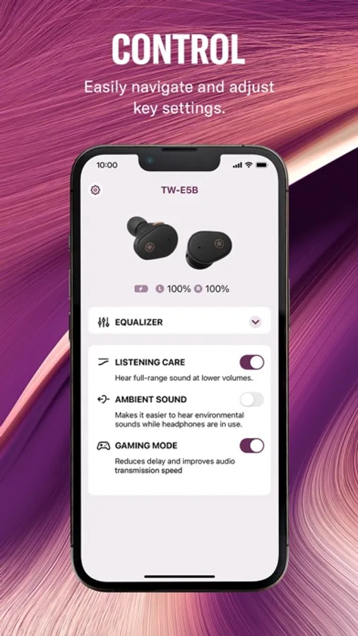 - CONTROL: Easily navigate and adjust settings such as Ambient Sound and Listening Care.