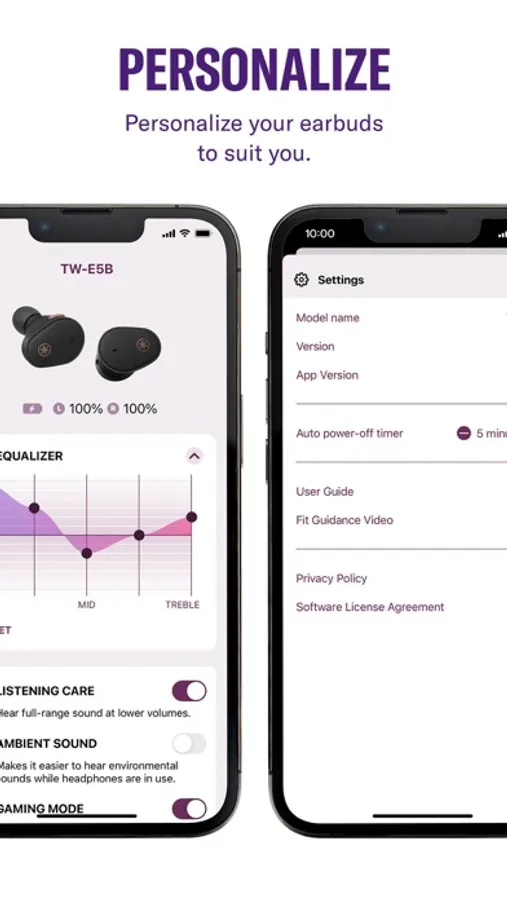 The Yamaha Headphone Control app allows custom feature adjustment and personalization for select Yamaha headphones and earbuds.