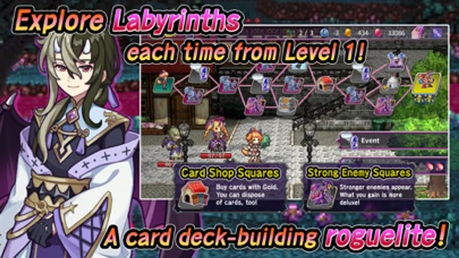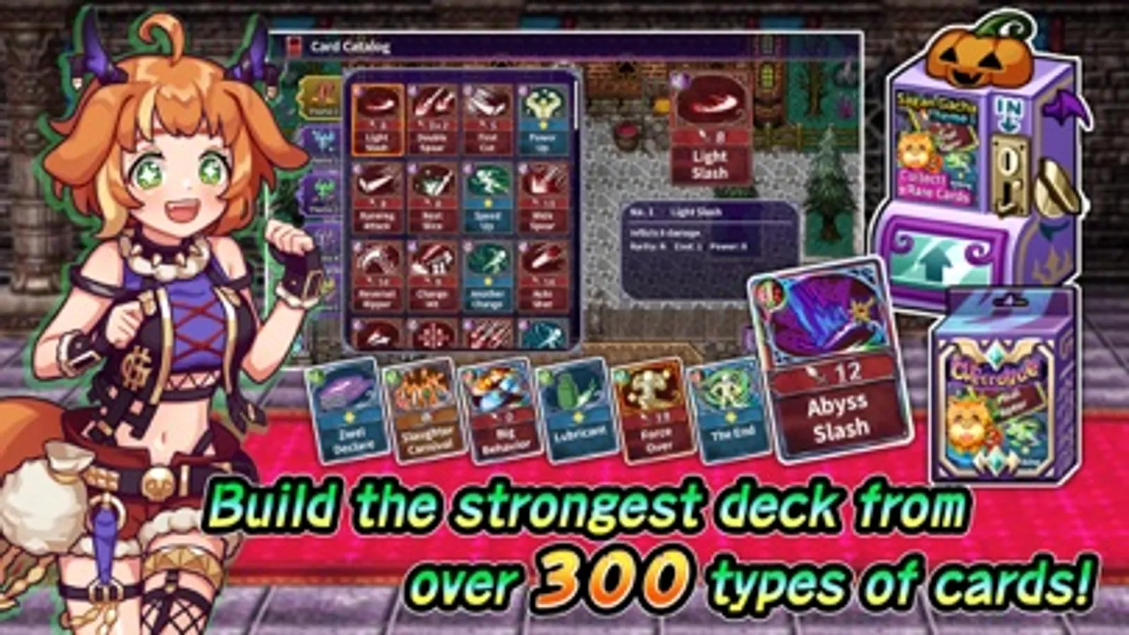 Proceed through dungeon-like labyrinths building up your card deck in a roguelite style! There are up to 5 different labyrinth themes based on card genres like poison or graveyards. Enjoy a different deck experience each time you visit the labyrinth as the number of cards increase. Over 300 types of cards and 150 types of treasure await you, so combos and combinations are up to you.