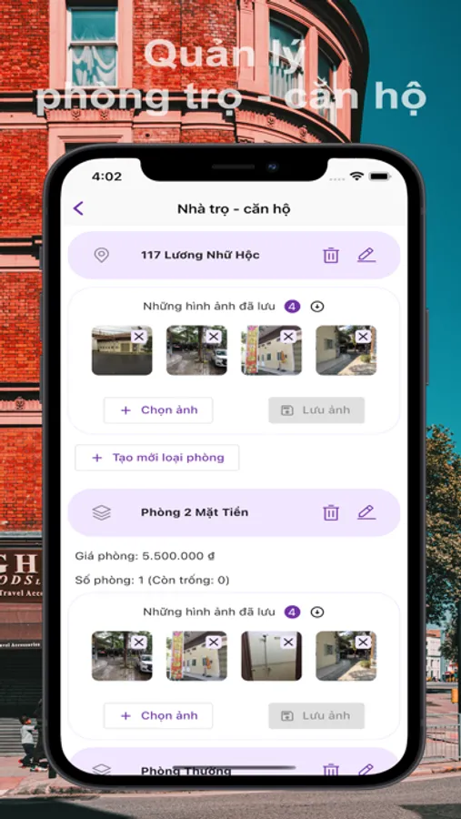 - Chủ hay người đại diện hợp pháp của phòng trọ căn hộ có thể dùng phần mềm để quản lý phòng - trọ căn hộ như là đăng hình ảnh, thông tin quảng cáo, tình trạng cho thuê của phòng trọ - căn hộ như là còn trống hay đã cho thuê hết, giá tiền từng loại phòng ...
