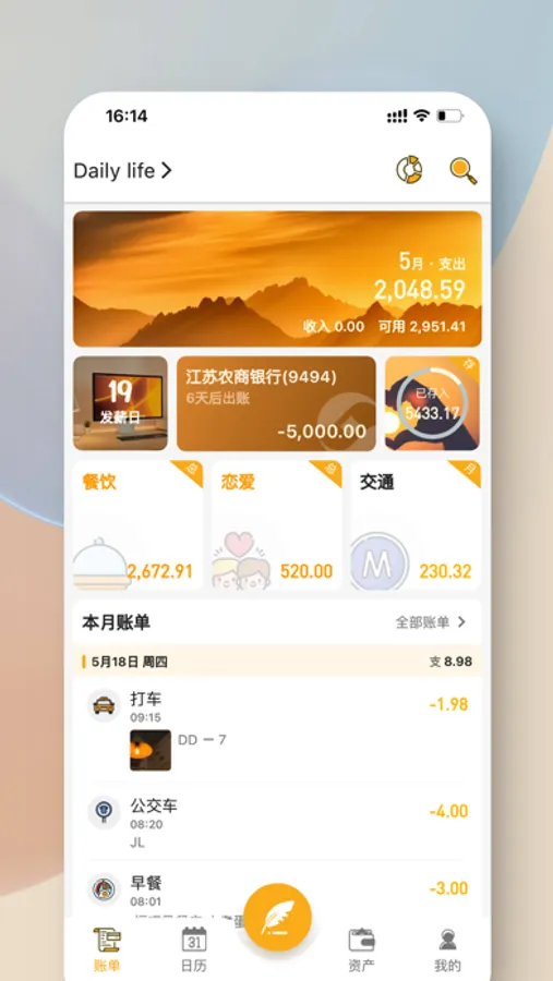 木木记账是一款实用便捷的生活记账软件。它可以帮助您记录日常的收入和支出,包括交通费用、购物开销、装修费用等各种账目。该软件提供清晰的分类,同时还支持自定义分类,让您能够更好地管理和掌控个人财务。拥有简单流畅的记账流程,您可以轻松地添加备注和图片,养成良好的记账习惯,助您实现财务自由。