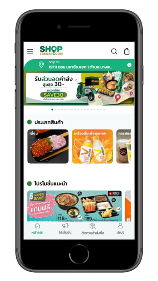 "จ่ายคุ้ม อร่อยครบ จบในแอปเดียว | ShopTeeNee คือแอปพลิเคชันที่อำนวยความสะดวกในการให้บริการสั่งอาหารและเครื่องดื่มจากนานาร้านค้าชั้นนำ มีหมวดหมู่สินค้าให้เลือกได้หลากหลาย พร้อมโปรโมชั่นอีกมากมายที่ผลัดเปลี่ยนหมุนเวียนออกมาให้บริการตลอดทั้งปี