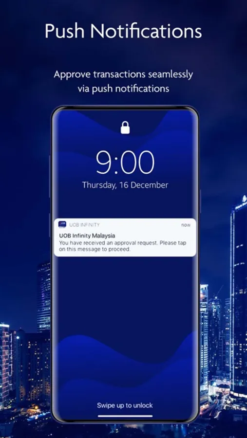 • Push Notification – Provide authorisation via push notifications received on the UOB Infinity mobile app.
