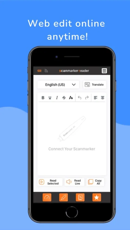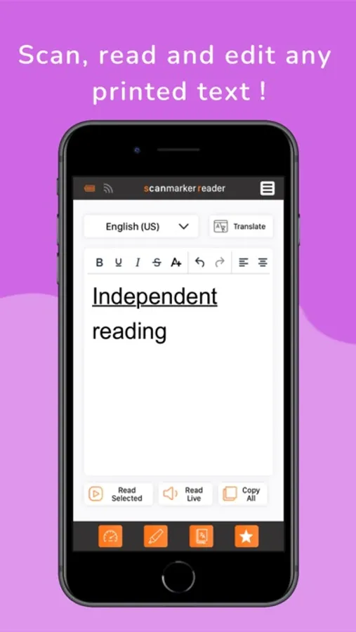Use your Scanmarker Reader to scan any printed text, and it will appear automatically in the Scanmarker Reader app on your screen. Scanmarker Reader is a pen-shaped assistive tool for those with reading difficulties or learning disabilities.