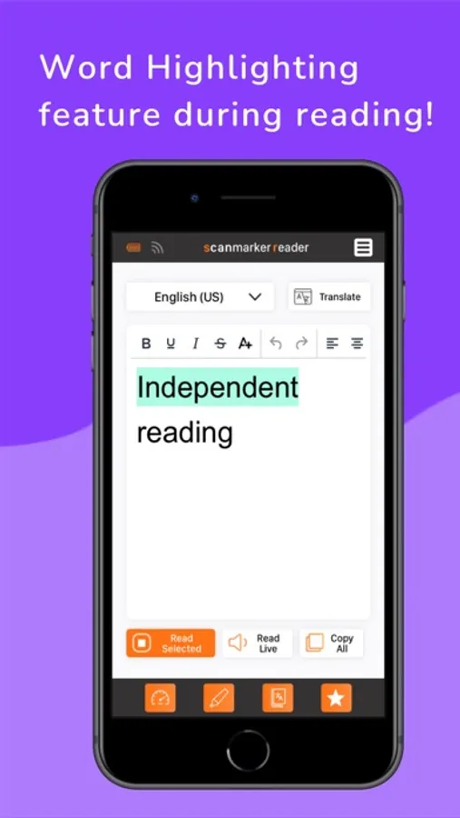 Scanmarker Reader facilitates the learning process, with emphasis placed on learning features that can be adapted according to individual preference, such as reading live while scanning or only reading selected words and parts of the text, adjusting the speed of reading and highlighting the words as it reads aloud. Get ready to become a fluent reader for life!