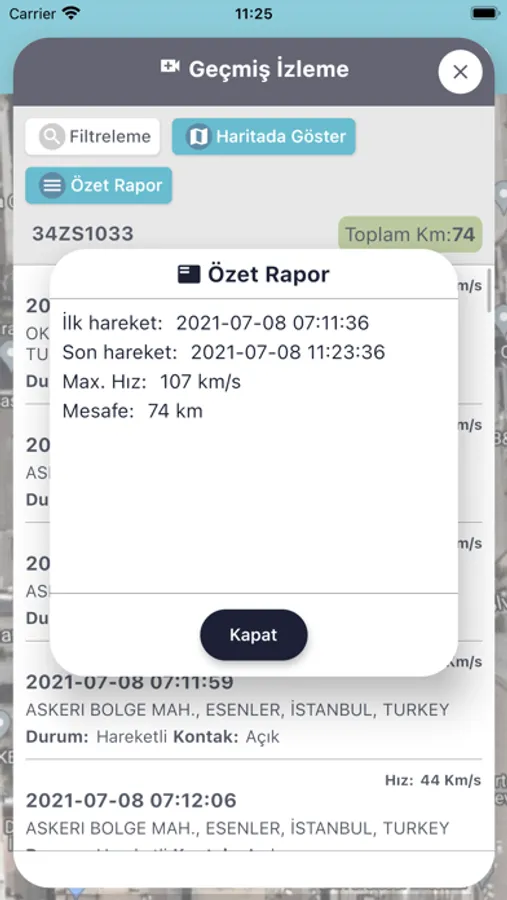 - Geçmiş izleme haritasında kontak aç-kapa bilgileri yerleştirildi.