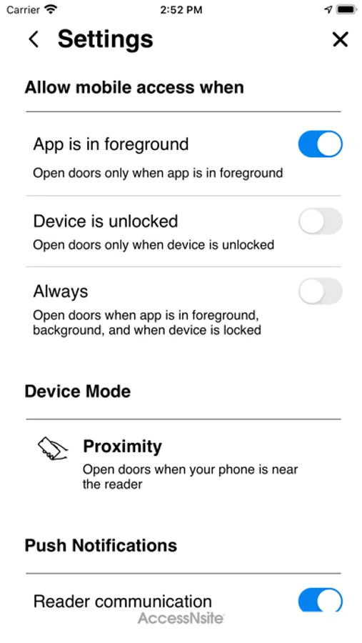 With the AccessNsite mobile app installed your mobile phone can now act as a quick, secure and convienient key. The app is easy to use and once granted access by an administrator, will provide secure entry to any connected, compatible AccessNsite connected doorway. To use, simply insert your credentials as provided and hold the app up near the lock.
