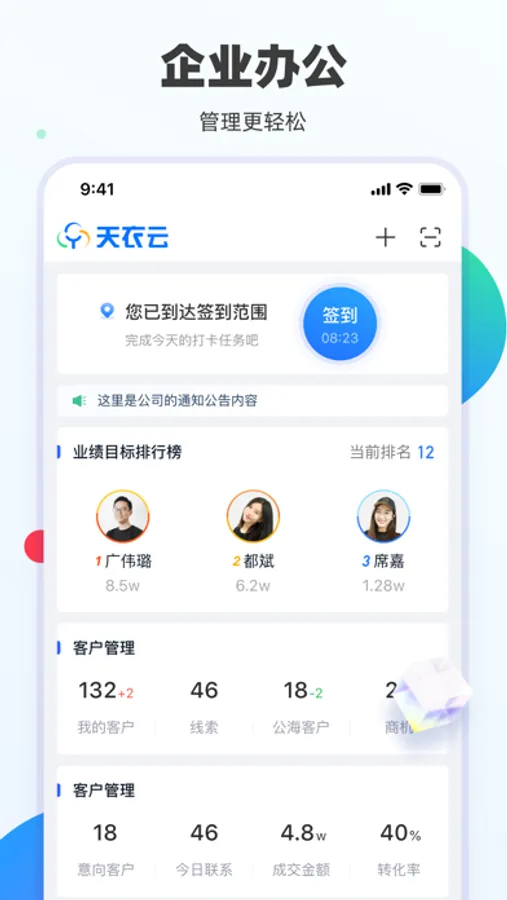 天衣云,管客户,管员工,管财务,管项目,管业务,管营销。包含OA,CRM,财务记账,进销存,项目管理,即时通讯。何必东奔西走,管理软件尽在天衣云