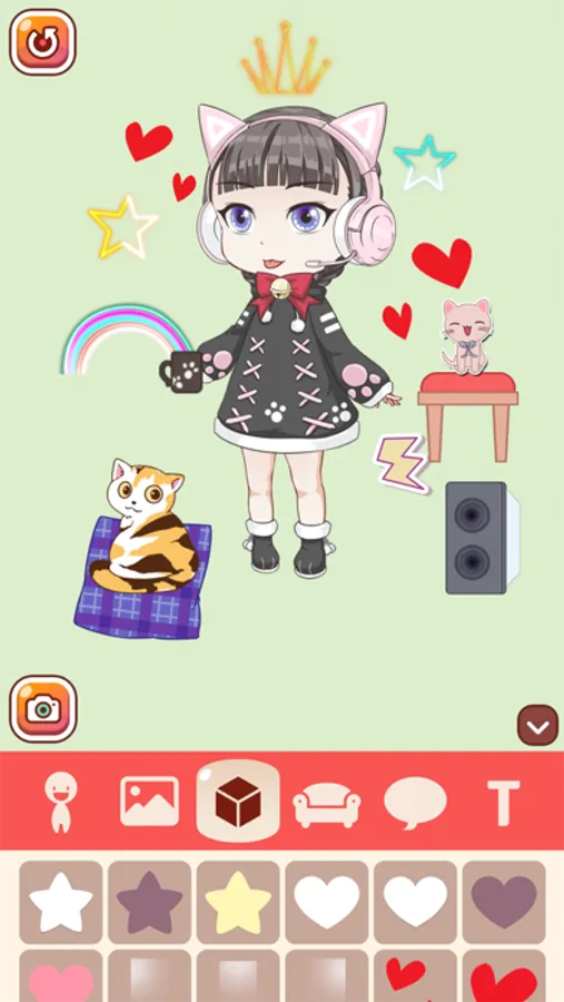 Create your own Fashion Avatar and Self Emoji for free, and you can decorate your personal room to look kawaii.