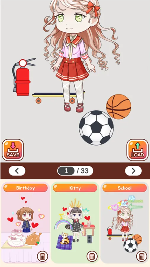 Use numerous dresses, jewelry, accessories, Speech bubbles and letters to decorate your doll.