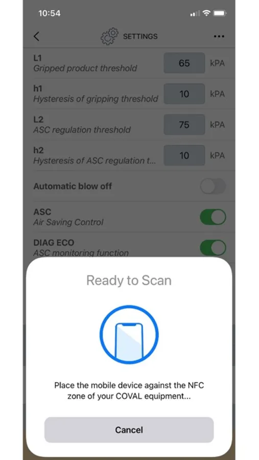 Thanks to NFC technology embedded in latest ranges of COVAL vacuum generators, Vacuum Manager app makes all setup, diagnostic and maintenance functions available and modifiable on your mobile devices.
