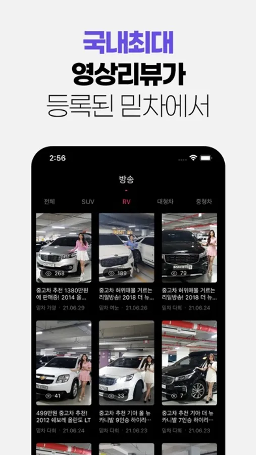 국내 최다 영상리뷰, 중고차 라이브 커머스 플랫폼 믿차.