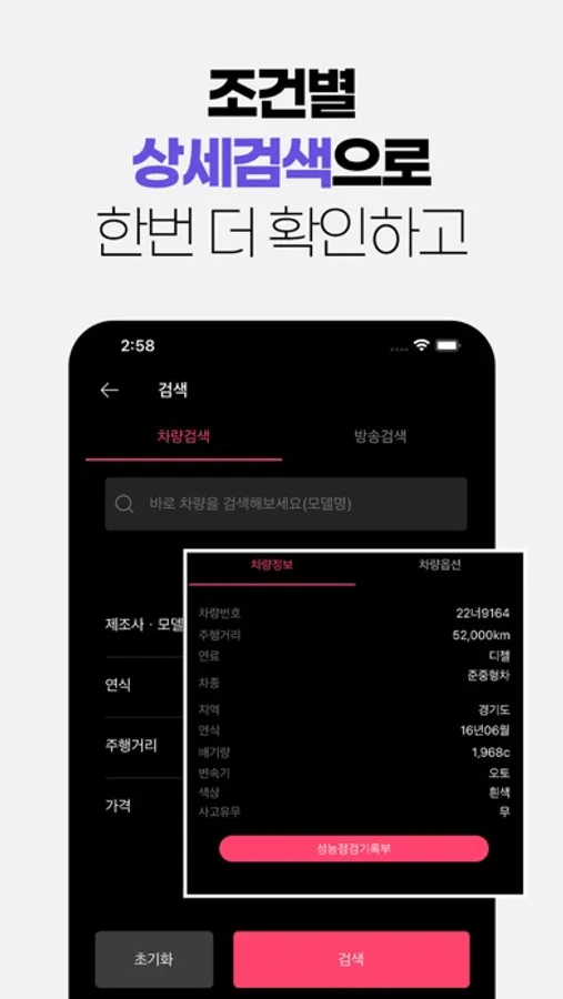 - 리뷰 영상을 보고 앱에서 주문하면 원하는 중고차가 고객님 집까지 배달됩니다.
